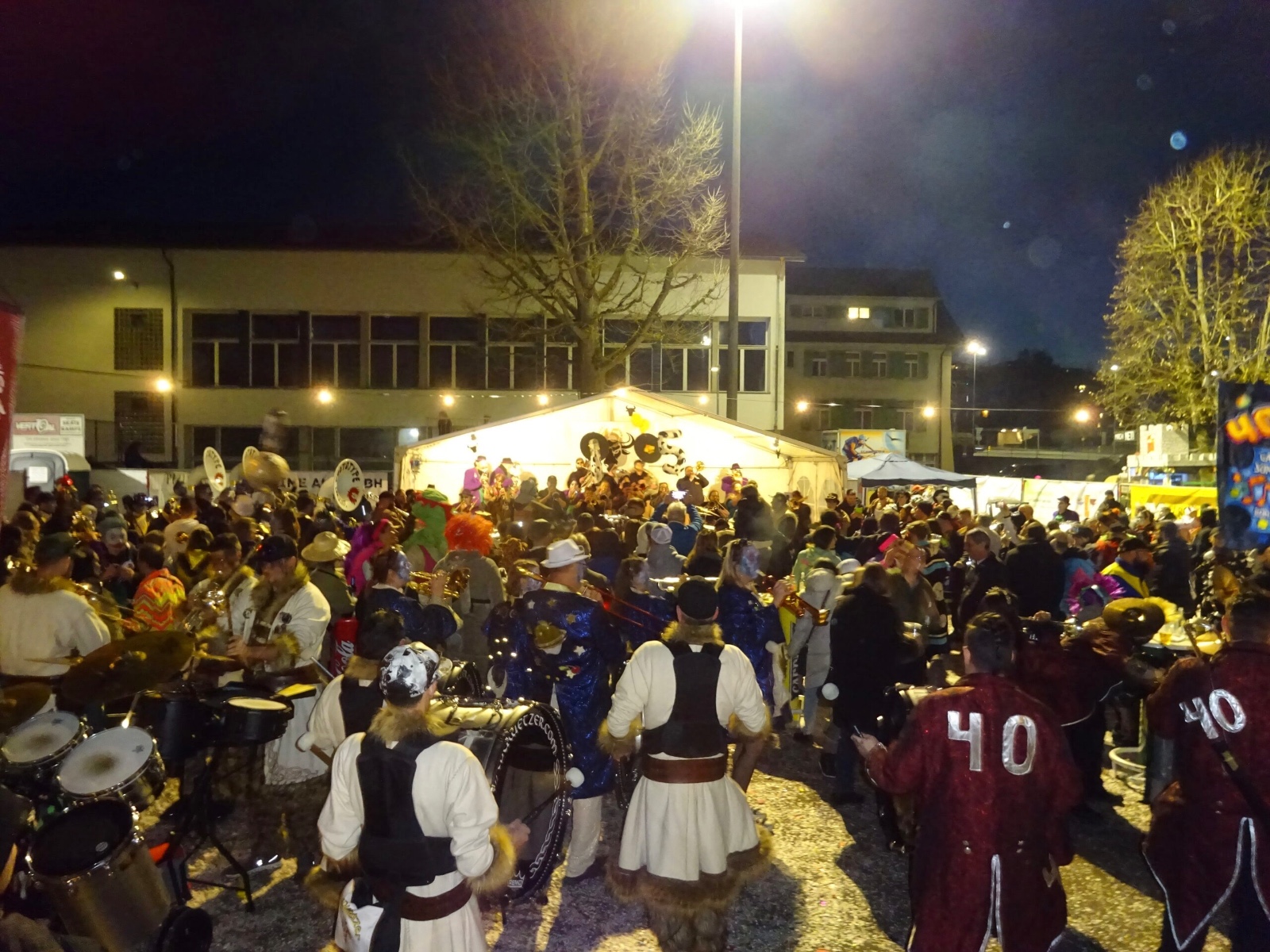 Umzug durch Schiers Monsterkonzert und Bühnenauftritt vor der Festhalle - jede Gugga darf nach dem Umzug auftreten