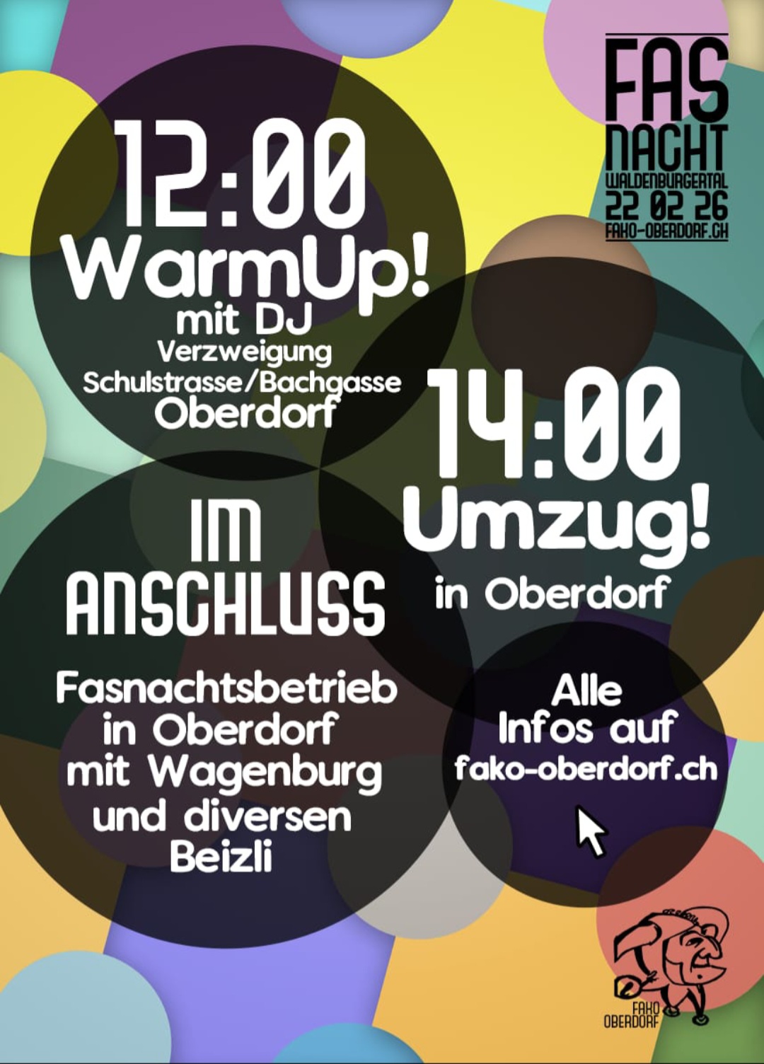 Für unseren Umzug und anschliessendem Fasnachtsbetrieb in Oberdorf BL suchen wir noch Guggen.