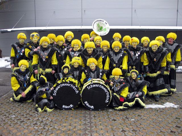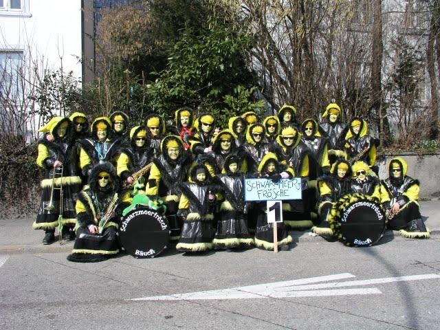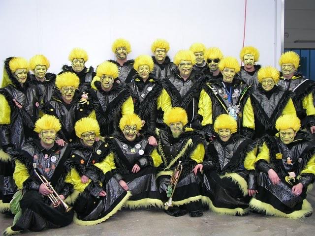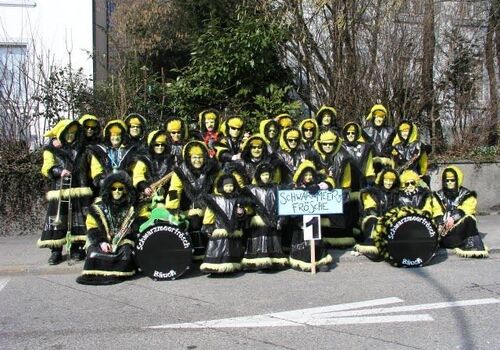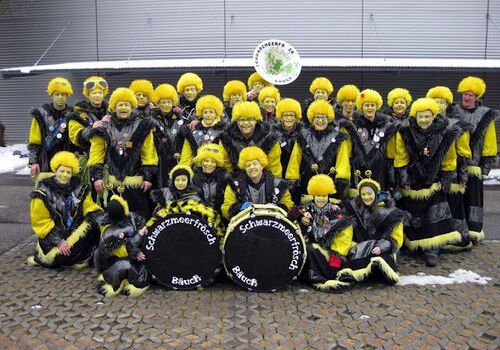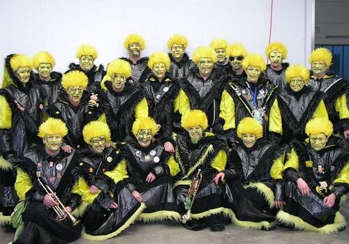 25 komplette Guggenkostüme in den Farben schwarz, gelb, silber mit gelbem Fell, bestehend aus langem Rock (Ganzkörper von Schultern bis Füsse) mit separatem Dreieck über den Schulter.