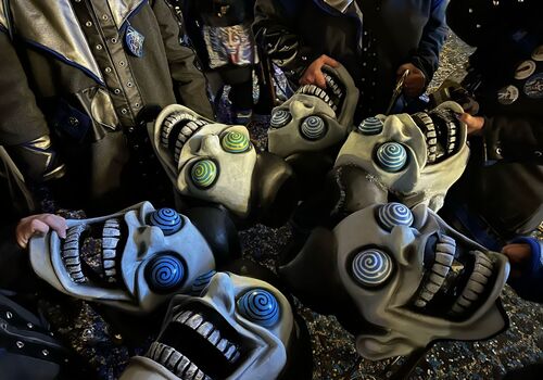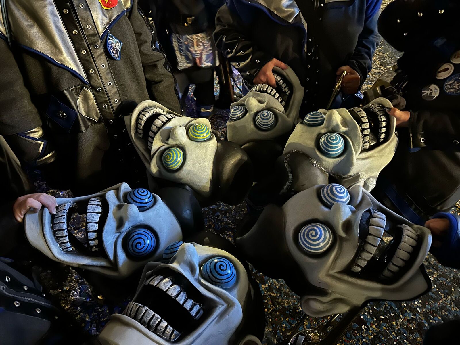Farbe Schwarz mit blauen und silbernen Applikationen Teilweise gefüttert